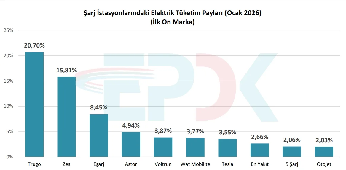 Elektrik tüketimi sıralamasında Trugo 12.447 megavatsaat ile birinci sırada yer aldı. Zes 9.504 megavatsaat, Eşarj ise 5.078 megavatsaat tüketim ile onu takip etti.