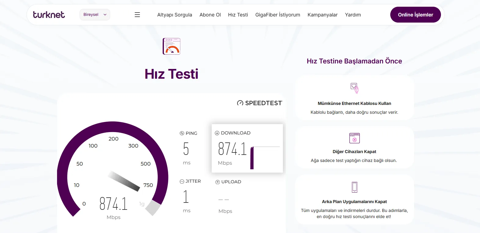 Sağlıklı bir sürat testi sonucu almak için test ortamınızı gerçek halde hazırlamanız gerekir. Aksi halde aldığınız sonuçlar, gerçek internet performansınızı yansıtmayabilir.