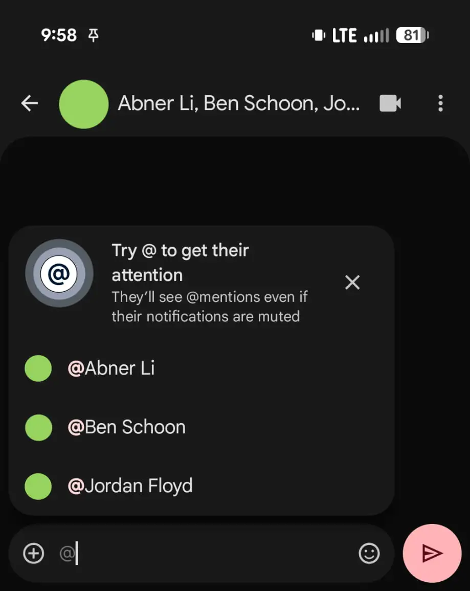 Beta sürecinde dikkat çeken en değerli yeniliklerden biri, küme sohbetlerinde kullanıcı etiketleme özelliği oluyor. Artık bir kümede bildirimleri sessize almış olsanız bile, biri sizi etiketlediğinde dikkatinizi çekebilecek bildirimler alabileceksiniz. Ayrıyeten arayüz tarafında, bir iletiye yahut resme uzun bastığınızda açılan menü büsbütün değişiyor. Eski araç çubuğu yerine, art planı bulanıklaştıran ve dokunsal geri bildirim veren yüzen bir menü tasarımı test ediliyor.