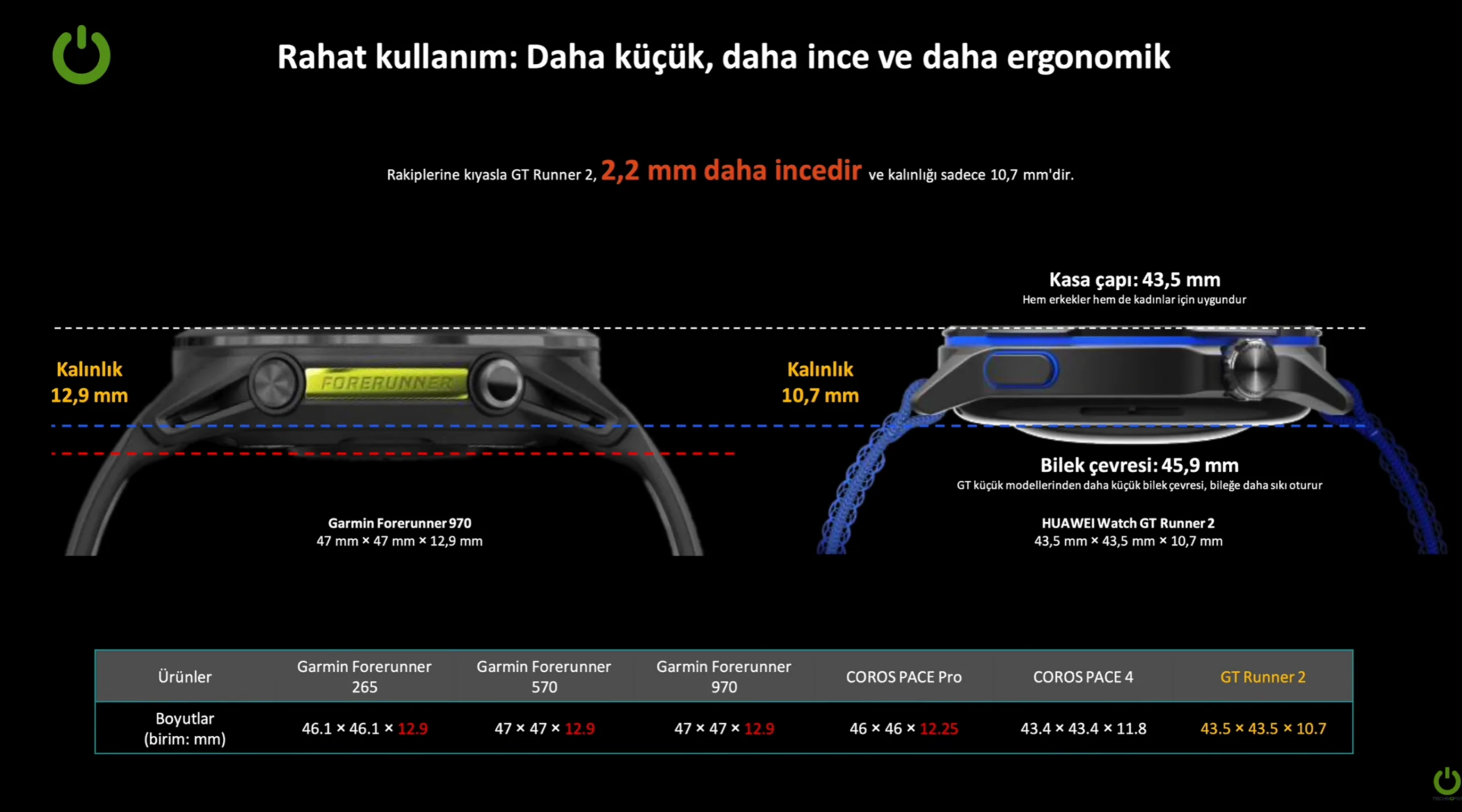 Toplam tabloya bakıldığında WATCH GT Runner 2, hafif gövde isteyen kullanıcılarla daha ayrıntılı koşu verisi arayan kullanıcıları birebir modelde buluşturuyor. Titanyum kasa, 34,5 gramlık gövde, 10,7 mm incelik, 3000 nit ekran, çift bantlı 5 uydu dayanağı, 14 güne kadar pil ömrü, 32 saate kadar GPS kullanımı, gelişmiş sıhhat sensörleri ve profesyonel koşu metrikleri saatin ana çerçevesini oluşturuyor. Bilhassa kent içinde gerçek rota takibi, uzun pil müddeti ve yazılım tarafındaki ayrıntılı koşu tahlilleri bu modelin en güçlü tarafları ortasında yer alıyor.