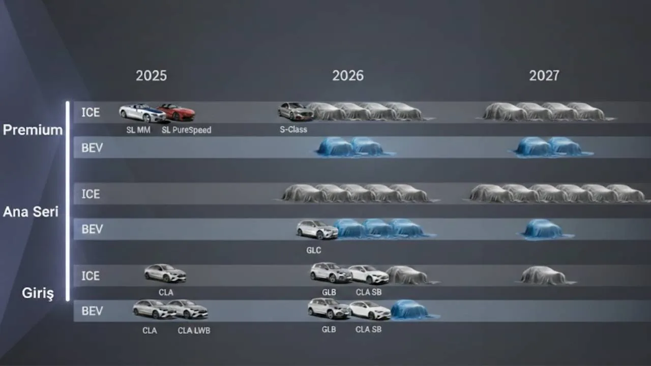 Ortaya çıkan planlamaya nazaran Mercedes-Benz 2026 yılı sonuna kadar 16 yeni model tanıtıyor. Bu modellerin 7’si kısa vadede, yaklaşık üç ay içinde sahneye çıkıyor. Program 2027’de de devam ediyor ve en az 16 model daha geliyor. Böylelikle marka sadece iki yılda 30’dan fazla arabası yenilemiş oluyor.